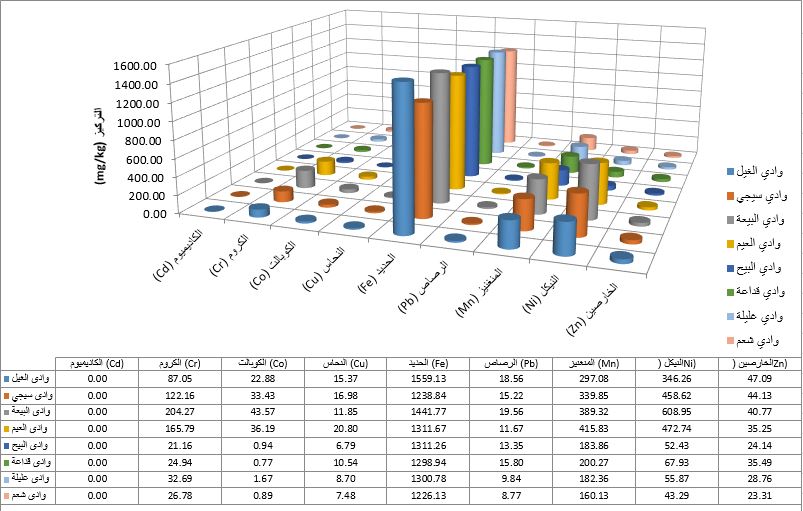 تركيز العناصر في عينات الرواسب من السدود​​​​​